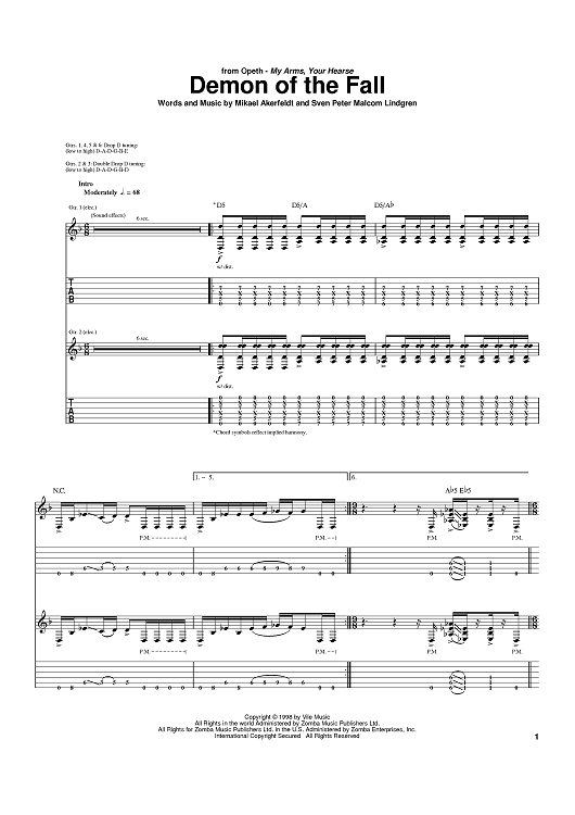 Digital Sheet Music for Demon Of The Fall by Mikael Akerfeldt, Sven Peter Malcom Lindgren, Opeth scored for Guitar Tab; id:397964