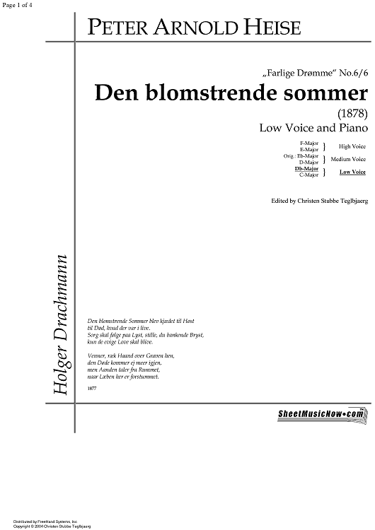 Digital Sheet Music for Den blomstrende Sommer by , Peter Heise scored for Alto or Bass/Piano; id:343753