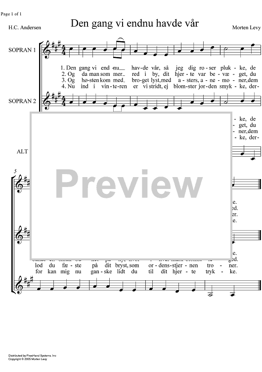 Digital Sheet Music for Den gang vi endnu havde vaar by Morten Levy scored for Girls' Choir; id:354229