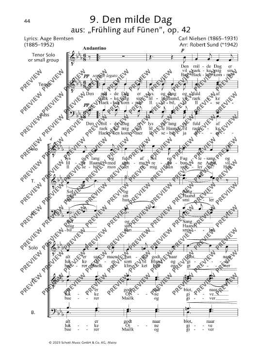 Digital Sheet Music for Den milde dag by Carl Nielsen, Robert Sund scored for Men's Choir (t Solo, Ttbb A Cappella); id:499437