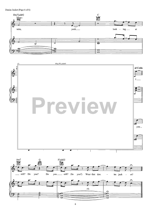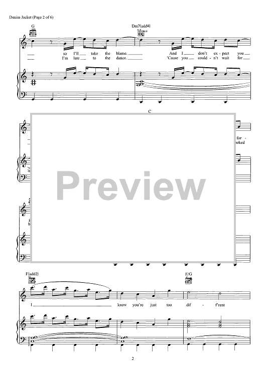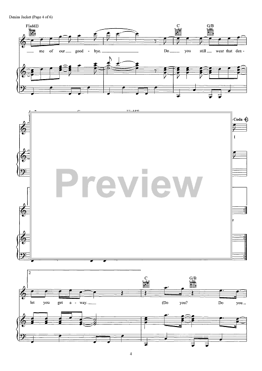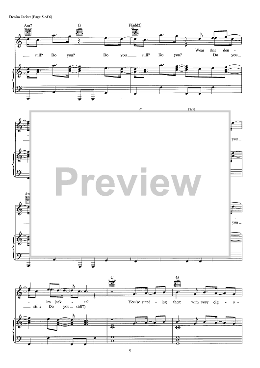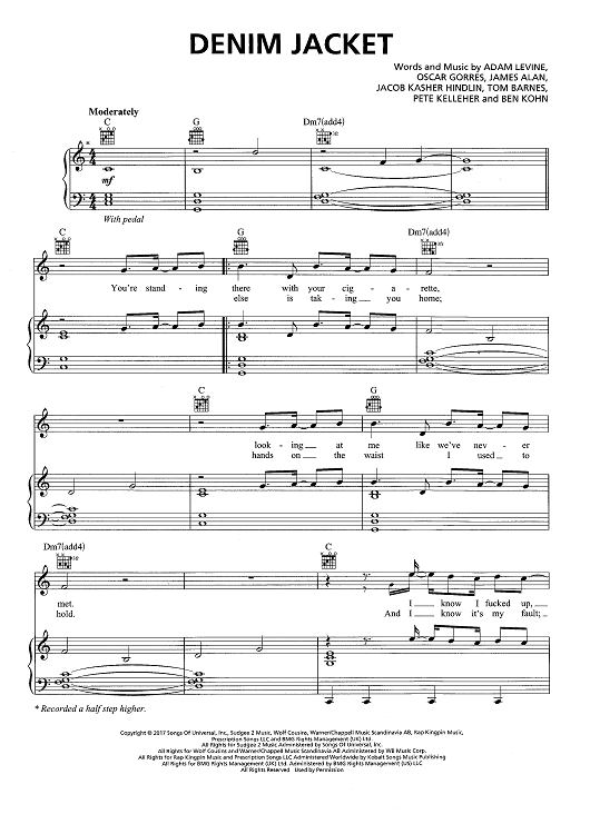 Digital Sheet Music for Denim Jacket by Adam Levine, Maroon 5, Jacob Hindlin, Peter Kelleher, Ben Kohn, Tom Barnes, Oscar Gorres scored for Piano/Vocal/Chords; id:466273