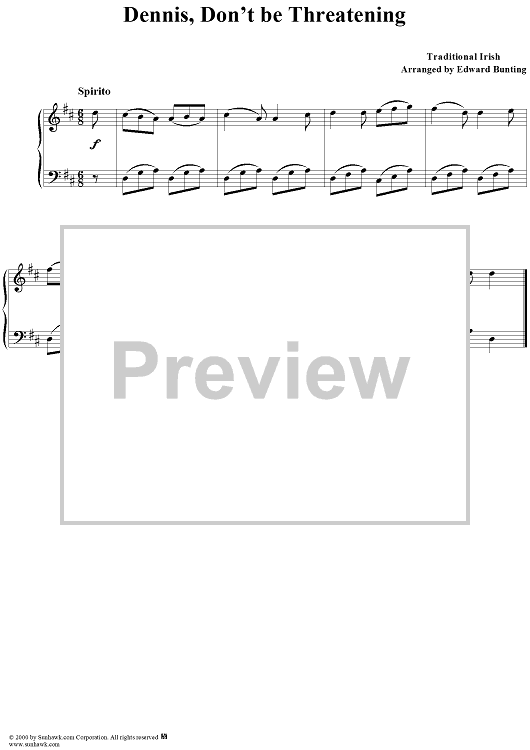 Digital Sheet Music for Dennis, Don't be Threatening by , Edward Bunting, Traditional scored for Piano Solo; id:260704