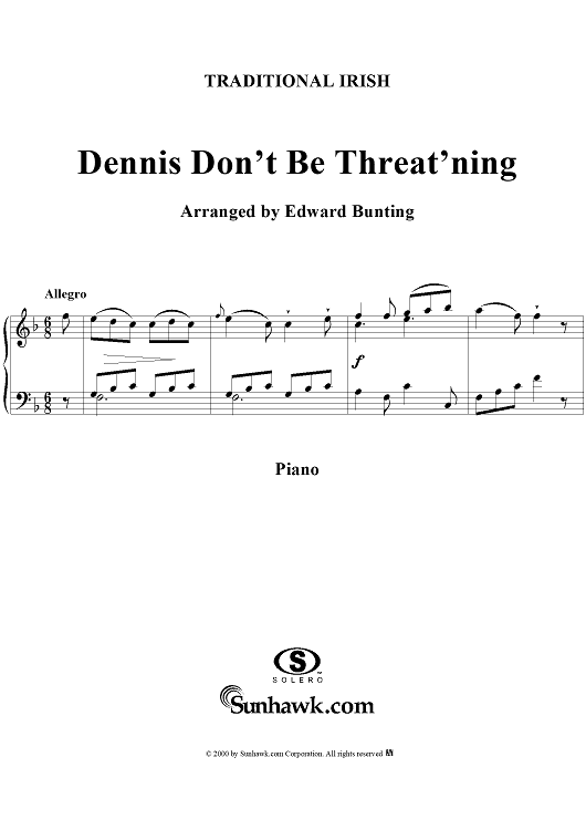 Digital Sheet Music for Dennis Don't Be Threat'ning by , Edward Bunting, Traditional scored for Piano Solo; id:166069