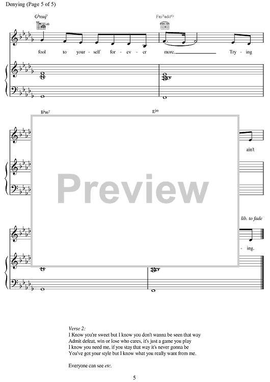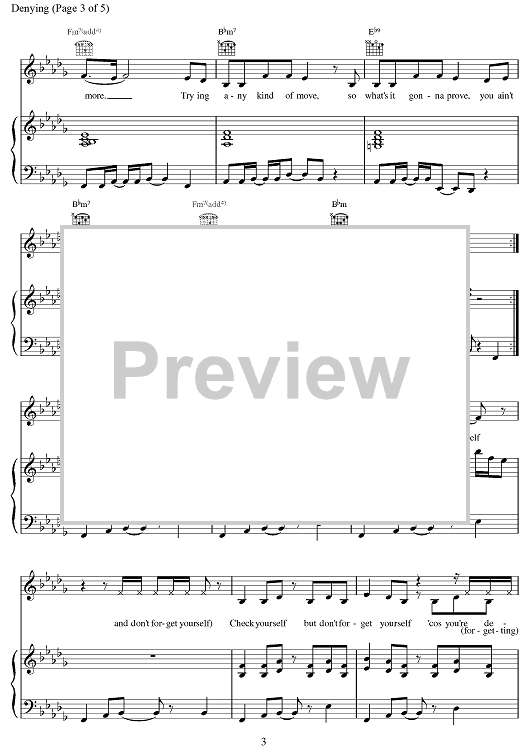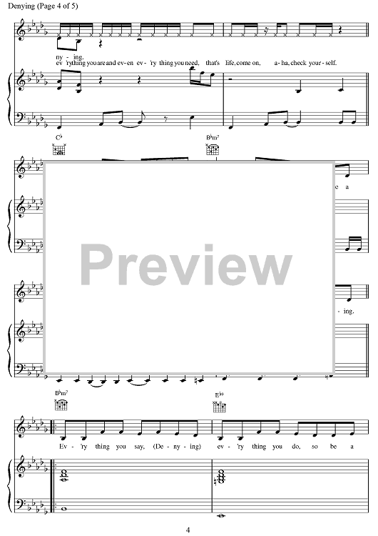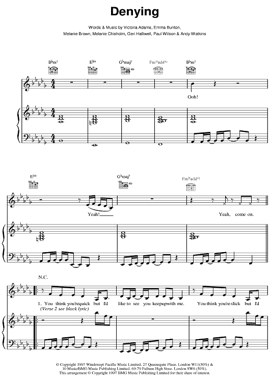 Digital Sheet Music for Denying by Paul Wilson, Andy Watkins, Emma Bunton, Melanie Brown, Mel C, Victoria Adams, Spice Girls scored for Piano/Vocal/Chords; id:376560