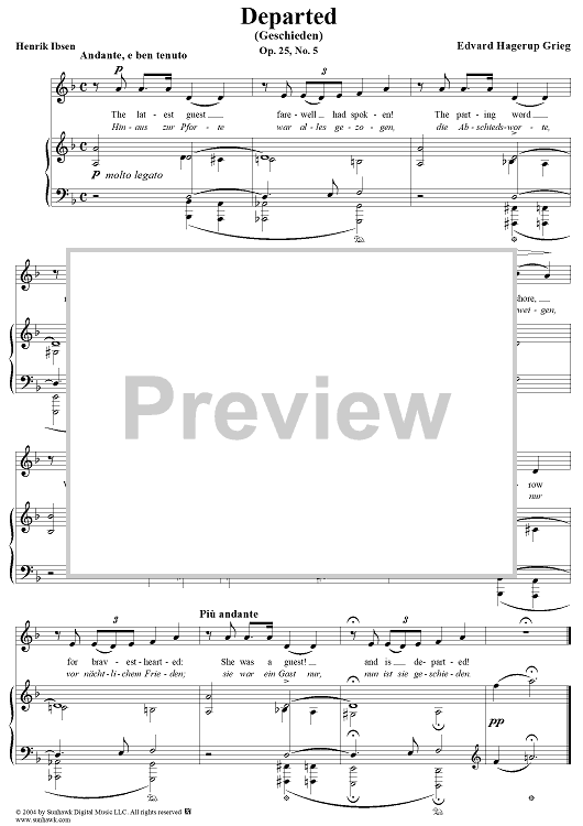 Digital Sheet Music for Departed, Op. 25, No. 5 by Edvard Grieg, Henrik Ibsen scored for Voice/Piano; id:303603