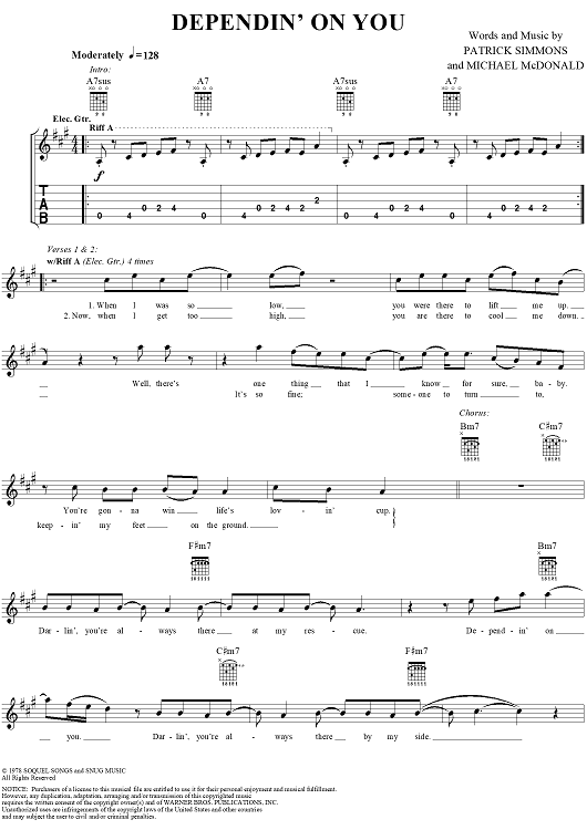 "Dependin' on You" Sheet Music by The Doobie Brothers