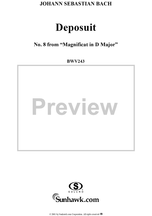 "Deposuit (Aria), No. 8 from "Magnificat in D Major"" Sheet Music by Johann Sebastian Bach