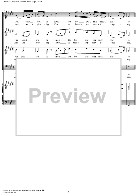 Digital Sheet Music for Der Freischutz, J277, Act 2, No. 8b - Leise, leise, fromme Weise (Aria) by Carl Maria Von Weber scored for Four-part Mixed Chorus; id:268613