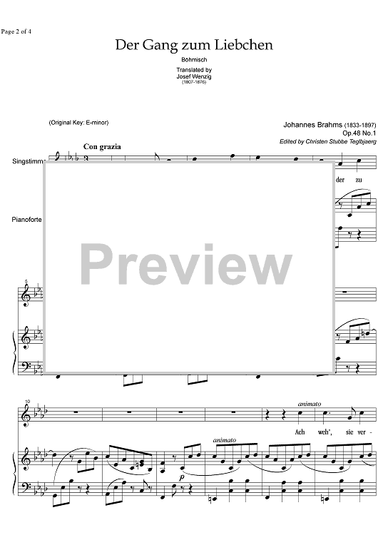 "Der Gang zum Liebchen Op.48 No. 1" Sheet Music by Johannes Brahms