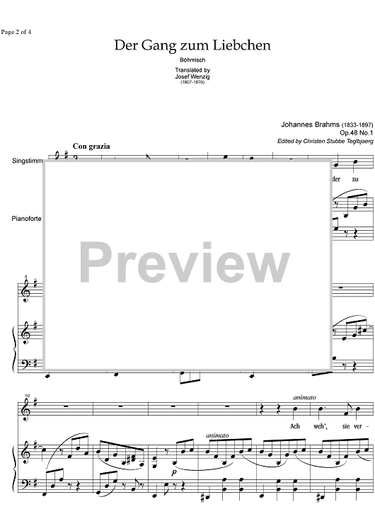 "Der Gang zum Liebchen Op.48 No. 1" Sheet Music by Johannes Brahms
