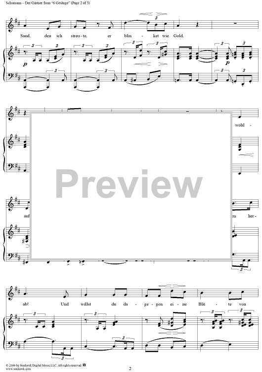 Digital Sheet Music for Der Gärtner, No. 3, Op. 107 by Robert Schumann, Eduard Mörike scored for Voice/Piano; id:318121