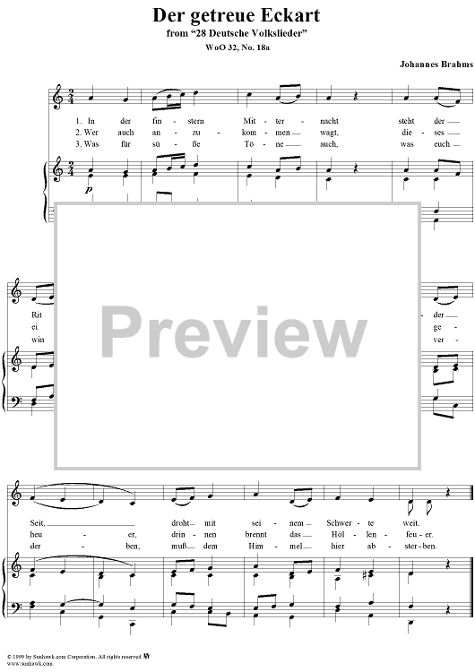Digital Sheet Music for Der getreue Eckart, No. 18a by Johannes Brahms scored for Voice/Piano; id:118464