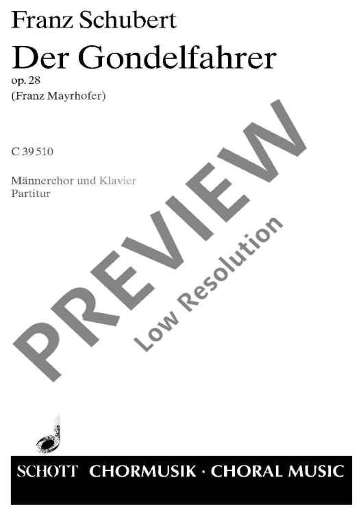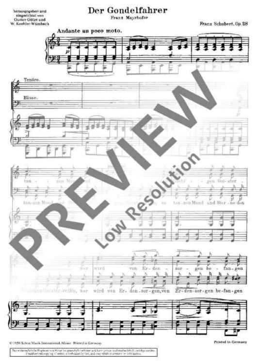 Digital Sheet Music for Der Gondelfahrer - Piano Score by Franz Schubert scored for Men's Choir (ttbb) And Piano; id:471622