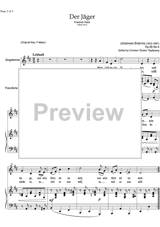 Digital Sheet Music for Der Jäger Op.95 No. 4 by , Johannes Brahms scored for Mezzo-soprano or Baritone/Piano; id:338150