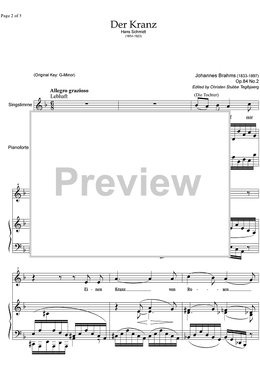 Digital Sheet Music for Der Kranz Op.84 No. 2 by , Johannes Brahms scored for Alto or Bass/Piano; id:336960