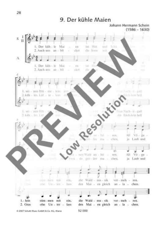 Digital Sheet Music for Der kühle Maien by Johann Hermann Schein, Wilfried Fischer, Hans Guenther Bastian scored for Female Choir (ssa); id:481891