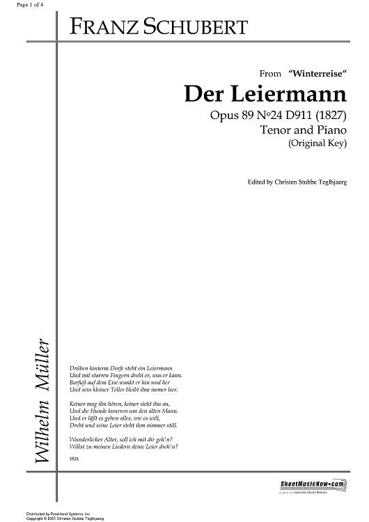 Digital Sheet Music for Der Leiermann Op.89 No.24 D911 by , Franz Schubert scored for Tenor/Piano; id:331948