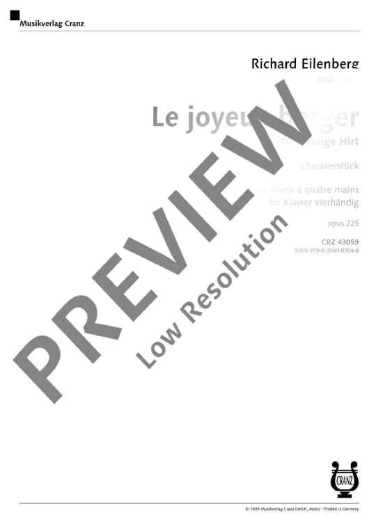 Digital Sheet Music for Der lustige Hirt by Richard Eilenberg scored for Piano (4 Hands); id:472172