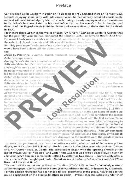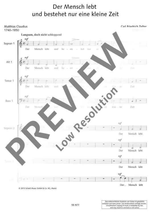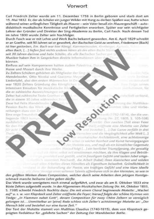 "Der Mensch lebt und bestehet nur eine kleine Zeit - Choral Score" Sheet Music by Carl Friedrich Zelter