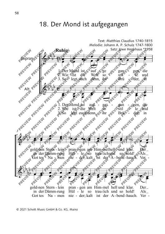 "Der Mond ist aufgegangen" Sheet Music by Johann Abraham Peter Schulz