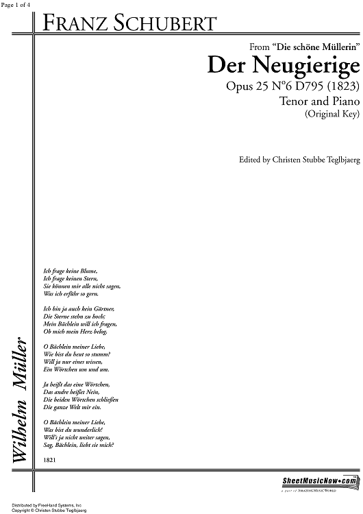 Digital Sheet Music for Der Neugierige Op.25 No. 6 D795 by , Franz Schubert scored for Tenor/Piano; id:330669