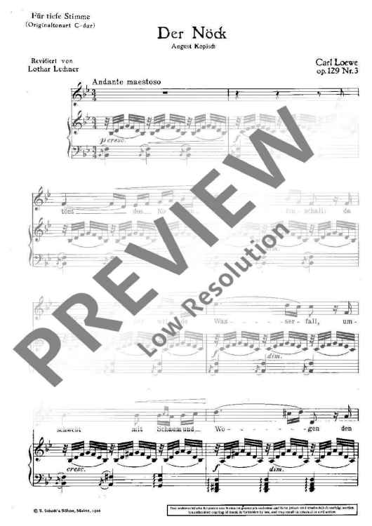 Digital Sheet Music for Der Nöck in C major by Carl Loewe scored for Low Voice Part And Piano (c Major, Original); id:482445