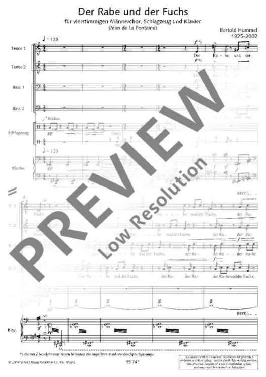 Digital Sheet Music for Der Rabe und der Fuchs - Full Score by Bertold Hummel scored for Men's Choir (ttbb), Percussion And Piano; id:484493