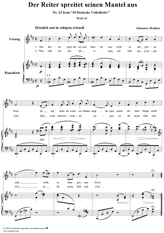"Der Reiter spreitet seinen Mantel aus - No. 23 from "49 Deutsche Volkslieder" WoO 33" Sheet Music by Johannes Brahms