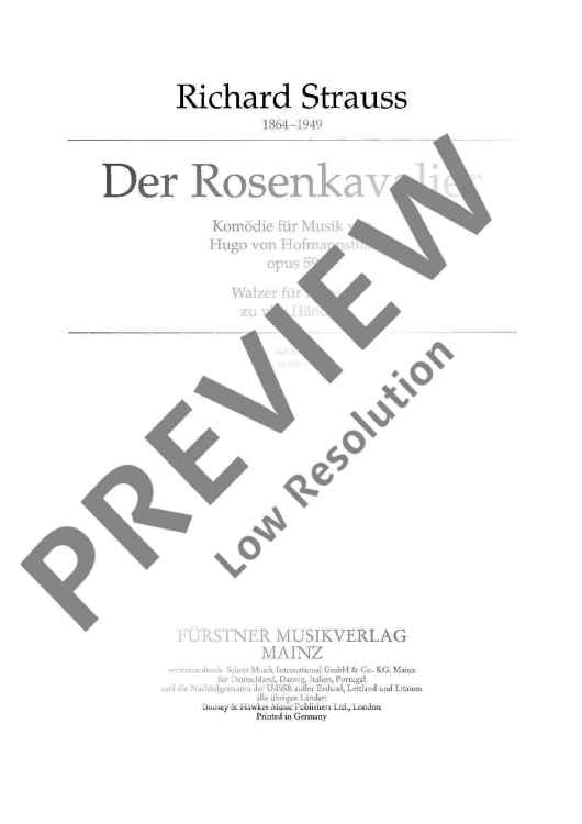Digital Sheet Music for Der Rosenkavalier by Richard Strauss, Otto Singer scored for Piano (4 Hands); id:493671