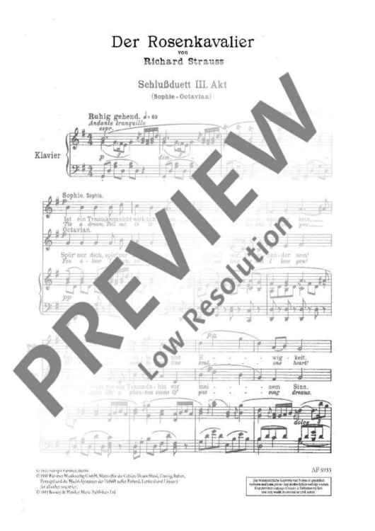 Digital Sheet Music for Der Rosenkavalier by Richard Strauss scored for High Soprano, Mezzo-soprano And Piano; id:493878