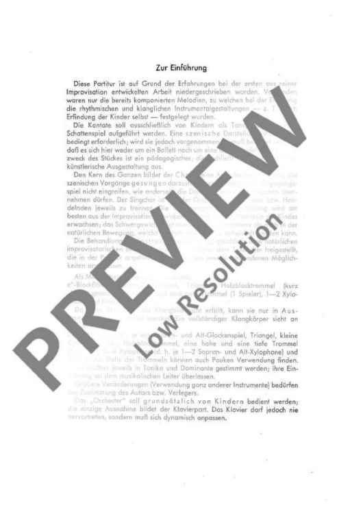 „Diese Partitur ist auf Grund der Erfahrungen bei der ersten aus reiner Improvisation entwickelten Arbeit niedergeschrieben worden. Vorhanden waren nur die bereits komponierten Melodien, zu welchen bei der Einübung die rhythmischen und klanglichen Instrumentalgestaltungen – z. T. durch Erfindung der Kinder selbst – festgelegt wurden. Die Kantate soll ausschließlich von Kindern als Tanzpantomime oder Schattenspiel aufgeführt werden. Eine szenische Darstellung ist nicht unbedingt erforderlich; wird sie jedoch vorgenommen, so muß beachtet werden, dass es sich weder um ein Ballett noch um eine Oper handelt. Der Grundzweck des Stückes ist ein pädagogischer; dies schließt in keiner Weise die künstlerische Ausgestaltung aus.” (Cesar Bresgen, Vorwort zur Partitur) Geeignet für Kinder ab 6 Jahren.