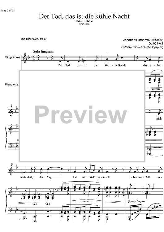 "Der Tod, das ist die kühle Nacht Op.96 No. 1" Sheet Music by Johannes Brahms