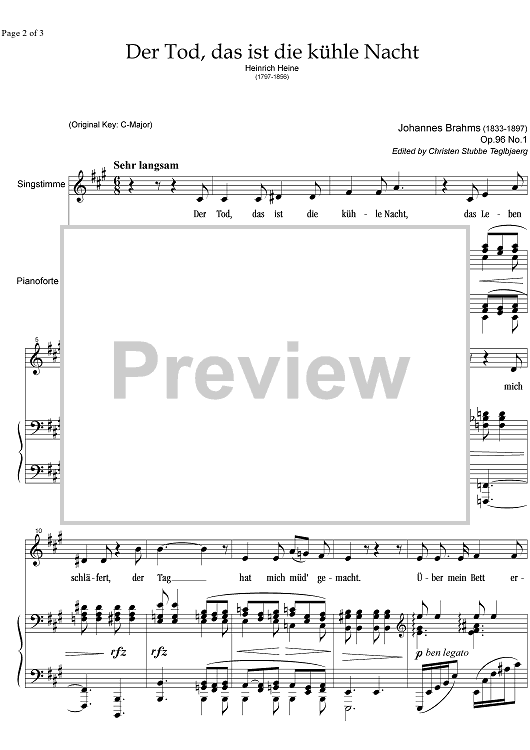 "Der Tod, das ist die kühle Nacht Op.96 No. 1" Sheet Music by Johannes Brahms