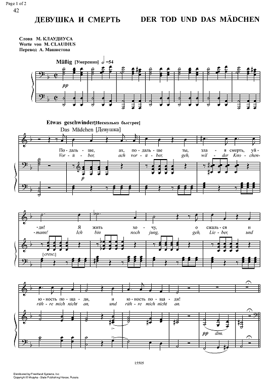 "Der Tod und das Mädchen D531" Sheet Music by Franz Schubert