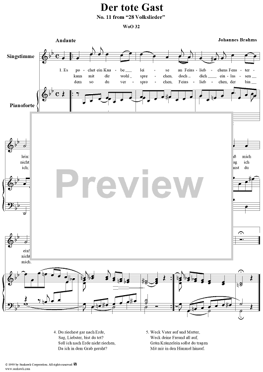 "Der tote Gast - No. 11 from "28 Volkslieder" WoO 32" Sheet Music by Johannes Brahms