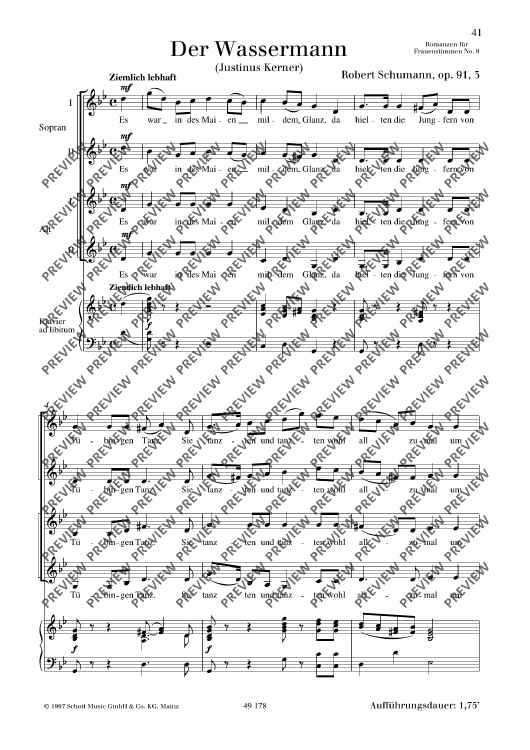 Digital Sheet Music for Der Wassermann by Robert Schumann scored for Female Voices (ssaa); Piano Ad Libitum; id:497345