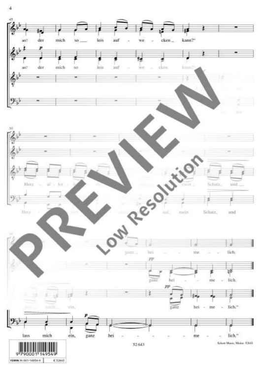 Hochromantische, als Dialog zwischen Frauen- und Männerchor angelegte Bearbeitung dieses unverbrauchten, stimmungsvollen Volksliedes. Der Bearbeiter war Mitbegründer und langjähriges Mitglied des Vokalensembles "Singer Pur". Er unterrichtet heute an der Musikhochschule Hannover.