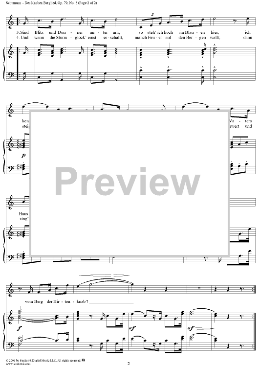 Digital Sheet Music for Des Knaben Berglied, No. 8, Op. 79 by Robert Schumann, L. Uhland scored for Voice/Piano; id:318135