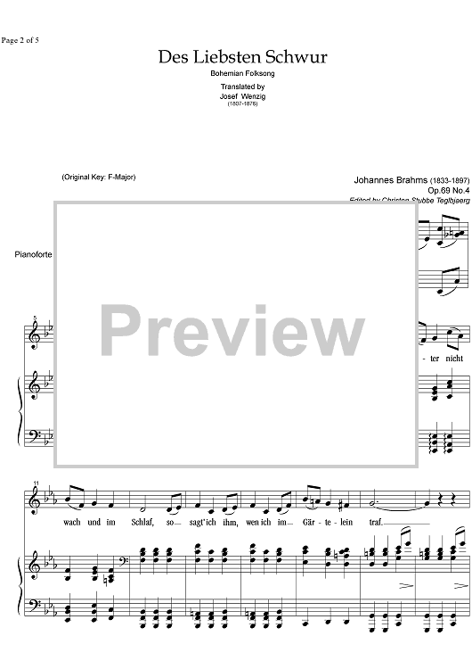 Digital Sheet Music for Des Liebsten Schwur Op.69 No. 4 by , Johannes Brahms scored for Alto or Bass/Piano; id:336061