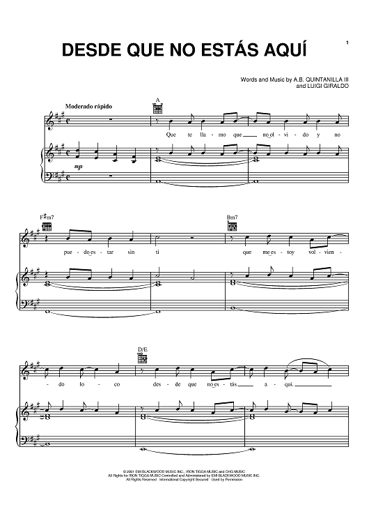 "Desde Que No Estas Aqui" Sheet Music by A.B. Quintanilla III