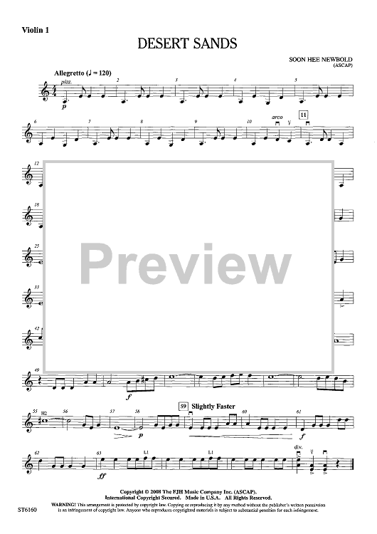 Digital Sheet Music for Desert Sands - Violin 1 by Soon Hee Newbold scored for String Orchestra; id:441665