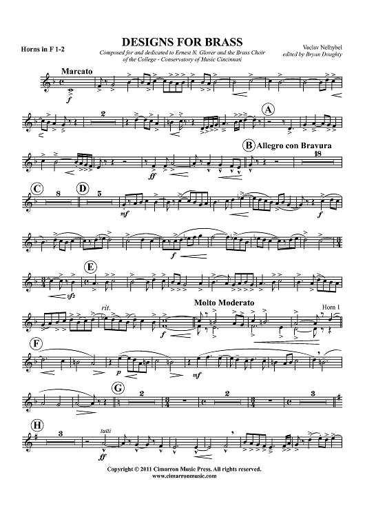 Digital Sheet Music for Designs for Brass - Horn in F 1 & 2 by Bryan Doughty, Vaclav Nelhybel scored for Brass Ensemble; id:427546