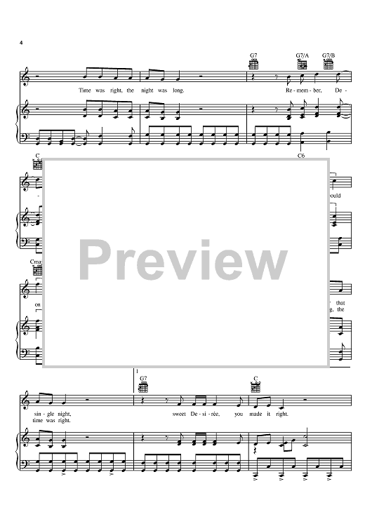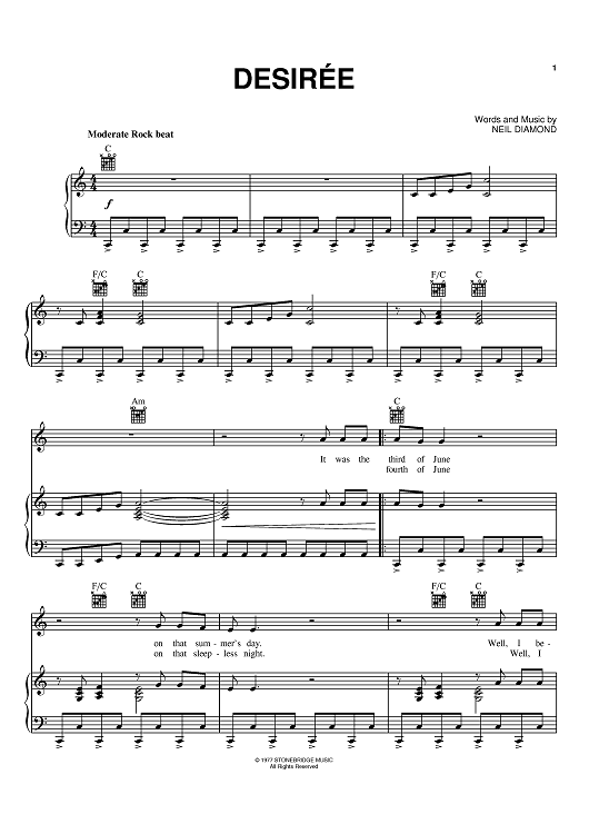 Digital Sheet Music for Desiree by Neil Diamond scored for Piano/Vocal/Chords; id:371318