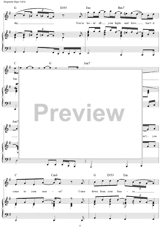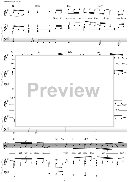 Digital Sheet Music for Desperado by Don Henley, Glenn Frey, Eagles scored for Piano/Vocal/Chords; id:119788