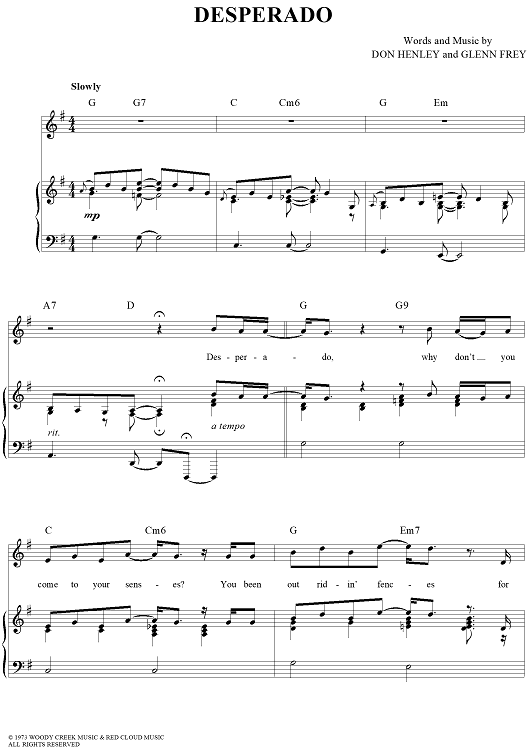"Desperado" Sheet Music by Eagles