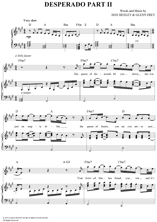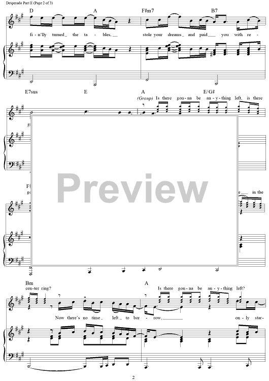 Digital Sheet Music for Desperado Part II by Don Henley, Glenn Frey, Eagles scored for Piano/Vocal/Chords; id:113263