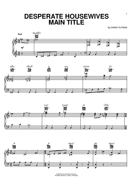 "Desperate Housewives Main Title" Sheet Music by Danny Elfman