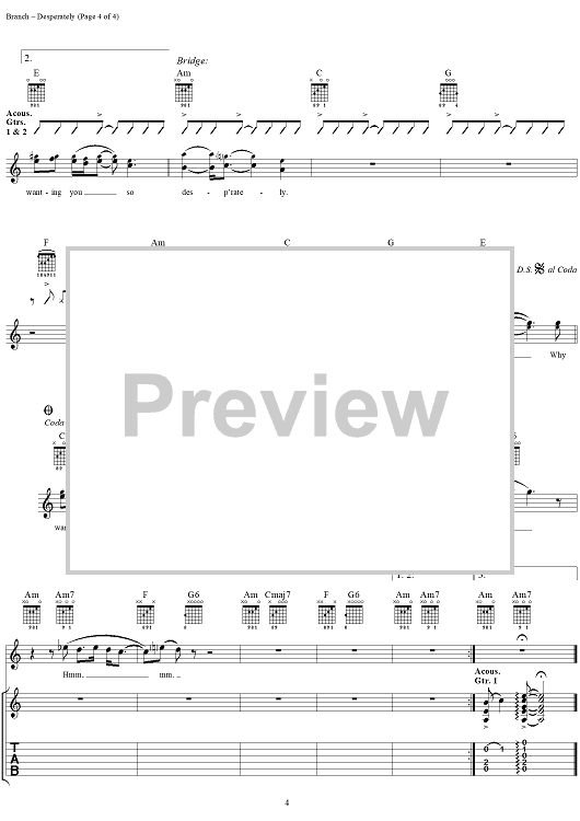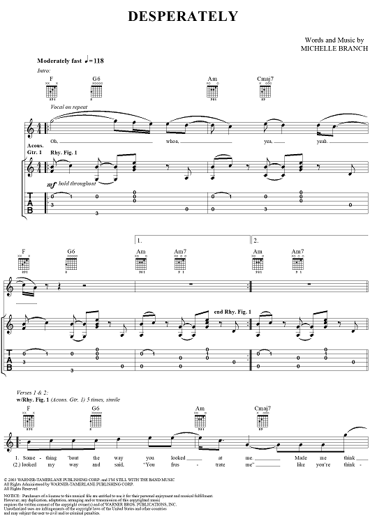 "Desperately" Sheet Music by Michelle Branch