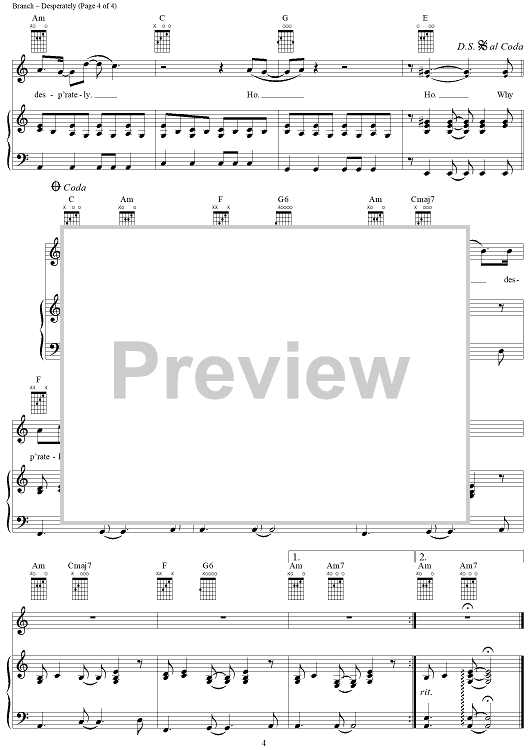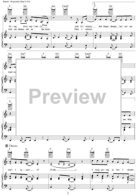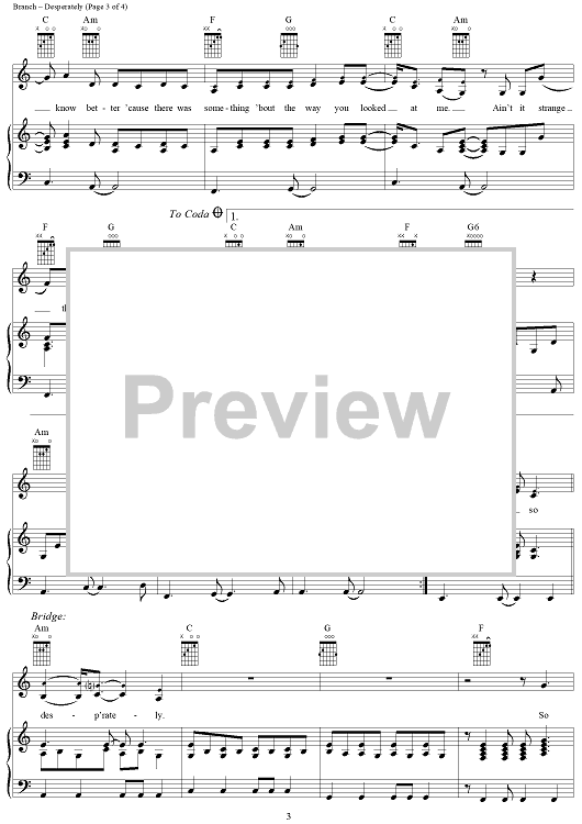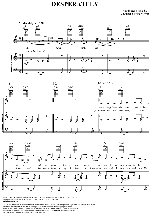 Digital Sheet Music for Desperately by Michelle Branch scored for Piano/Vocal/Chords; id:305259