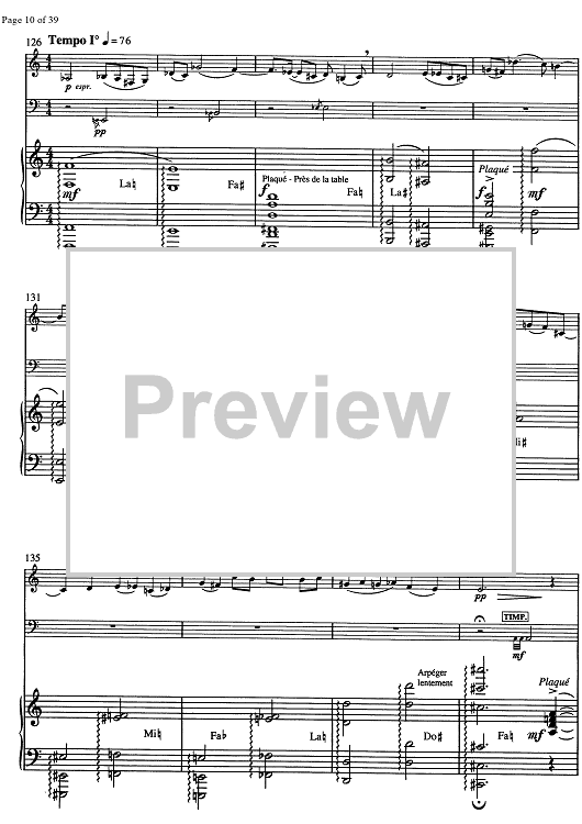 Digital Sheet Music for Destin (Symphonie à trois pour un drame) - Score by , Roger Vuataz scored for Alto Saxophone/Harp/Percussion; id:350855